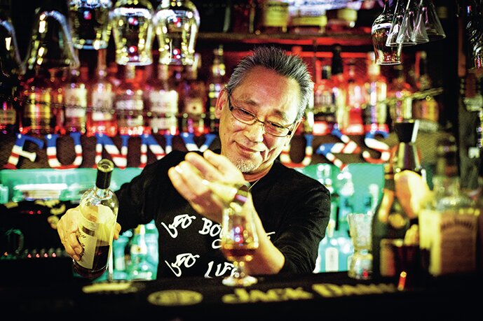 2015年にオープン、今年で9周年を迎える。少し怪しげなトビラを開くと待っているのは250種類のアメリカンウイスキーとバーボン、そして気さくなマスター石澤さんが優しげにお出迎えしてくれる。アメリカでしか買えない、今となっては入手困難なレアウイスキーまで嗜める。