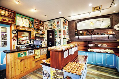 1978年、千葉県茂原市に’50年代アメリカのドーナツショップをイメージしてオープン。大きなドーナツのオブジェやアメリカンな看板の外装や入り口の扉を開けると広がるその空間はまるで50年代のアメリカにタイムスリップしたかのような雰囲気を味わえる。