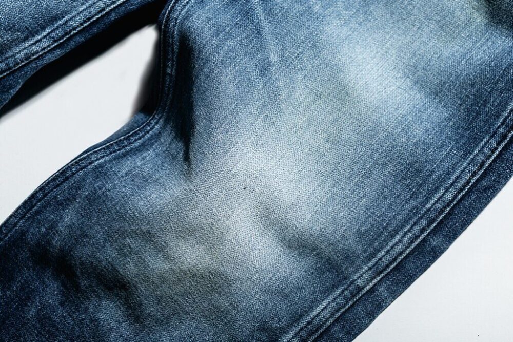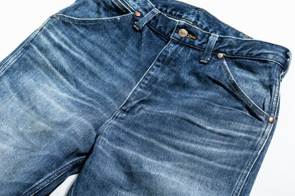 1960年代後半のヴィンテージデニムを解析し、再構築したオリジナルデニムを使用。当ブランドらしい両脇が巻縫いとなった仕様で、テーパードを加えたモダンなストレートシルエットに。カメラマンゆえに膝をついた姿勢が多く、強いアタリが生まれている。またバイク乗りらしいハッキリとしたヒゲも特徴だ。2万6400円
