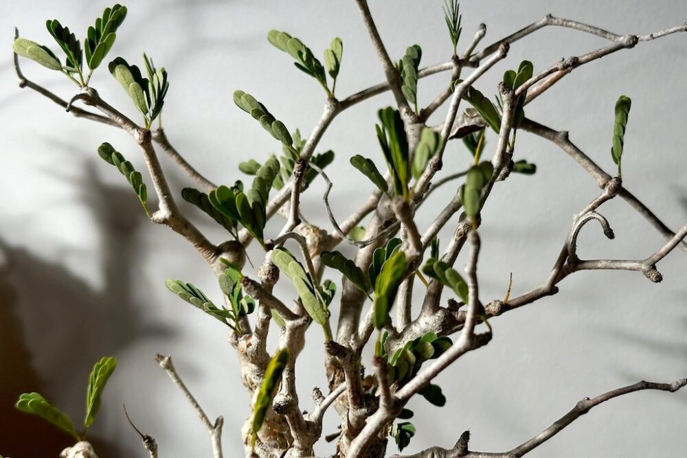塊根植物の愛好家にも非常に人気の高い灌木「センナ・メリディオナリス」。マダガスカル原産のマメ科の植物であり、ゴツゴツとした幹と枝に、マメ科の植物らしい羽状複葉の葉を付けた姿が特徴的な品種です。