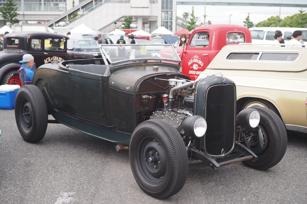 フラットヘッドのV8を搭載した1932年式フォード・ロードスター。エンジンフードもフェンダーも取っ払って軽量化した当時のホットロッドのスタイルを踏襲したスタイルのまま乗られている。その走りは現代車両にはない感覚が味わえる。