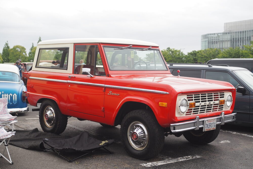 アメリカ旧車のなかでもここ最近価格がうなぎ登りのアーリーブロンコ。新生ブロンコの誕生で旧車マーケットも活気づいた。ヴィンテージ4WD特有のスクエアボディに丸目という組み合わせがたまらん。
