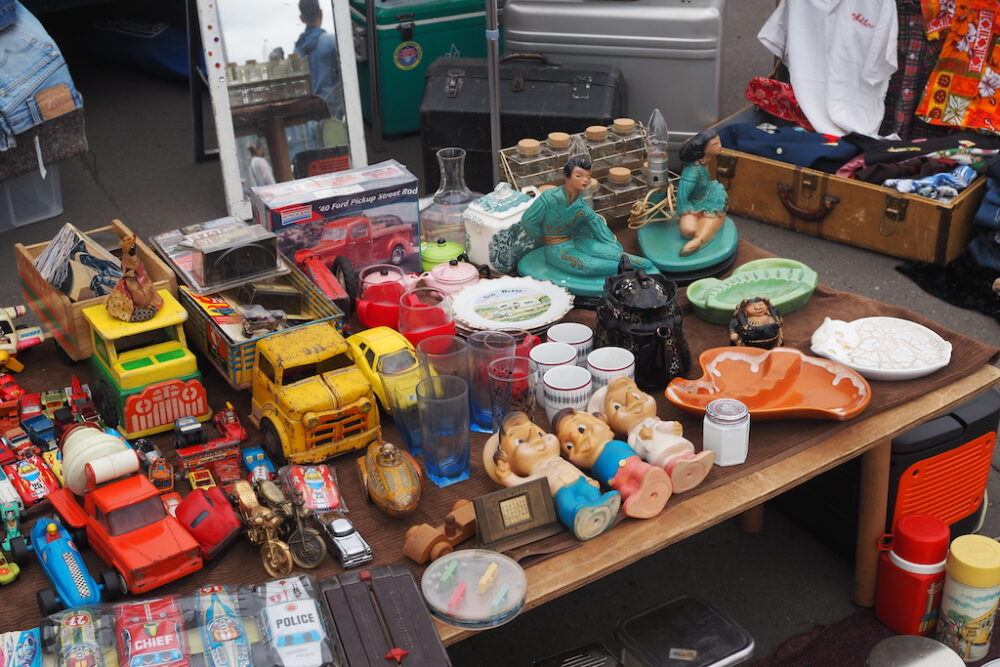 スワップミートには旧車のパーツや古着、それに写真のようなアンティークまで、大物から小物まで多くのショップが出店。旧車だけでなく売っているアイテムも古かった。ヴィンテージ愛好家には最高のイベント。