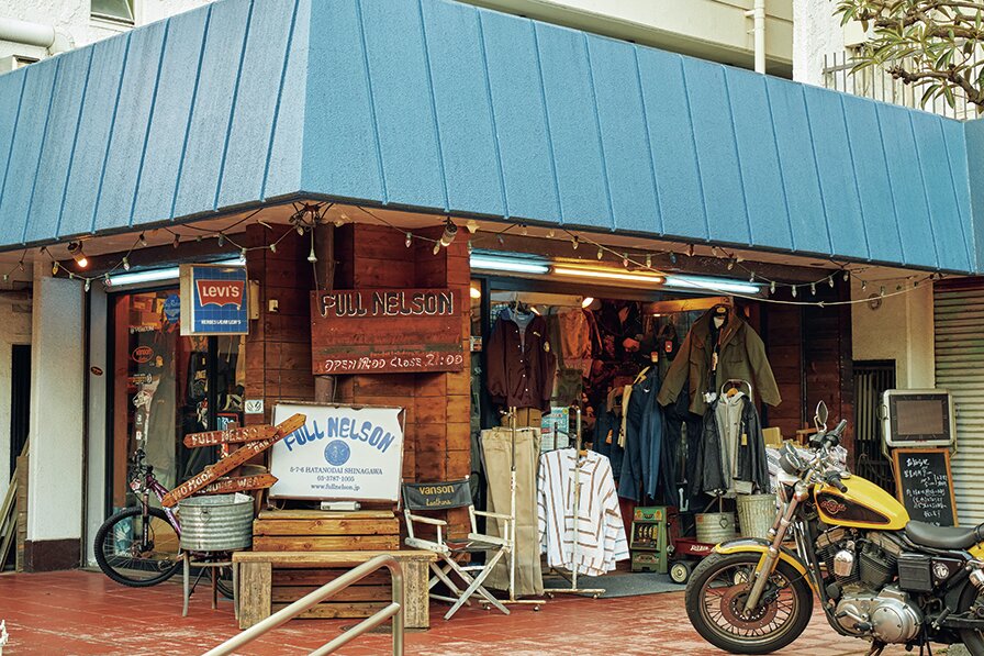 30年以上という長きに渡り、デニムやレザーアイテムと対峙してきたフルネルソンのオーナーの水野さん。ショップには国内外のブランドにオリジナルアイテムまで所狭しと並ぶ。