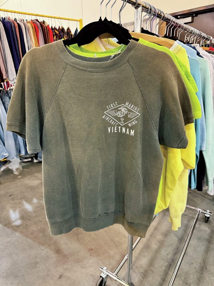ベトナム戦争時代にUSMCのエアクラフトクルーが着用していた半袖スウェット。少なくとも半世紀近く経年した結果、抜群のフェード具合に変化している。300ドル