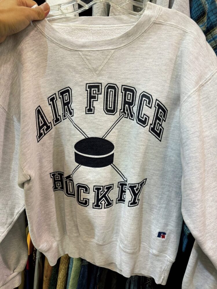 USAFのホッケーチームが着用していたクルーネックスウェット。ボディは’90s製のラッセル社でフロントにガゼットがデザインされている。価格は225ドル