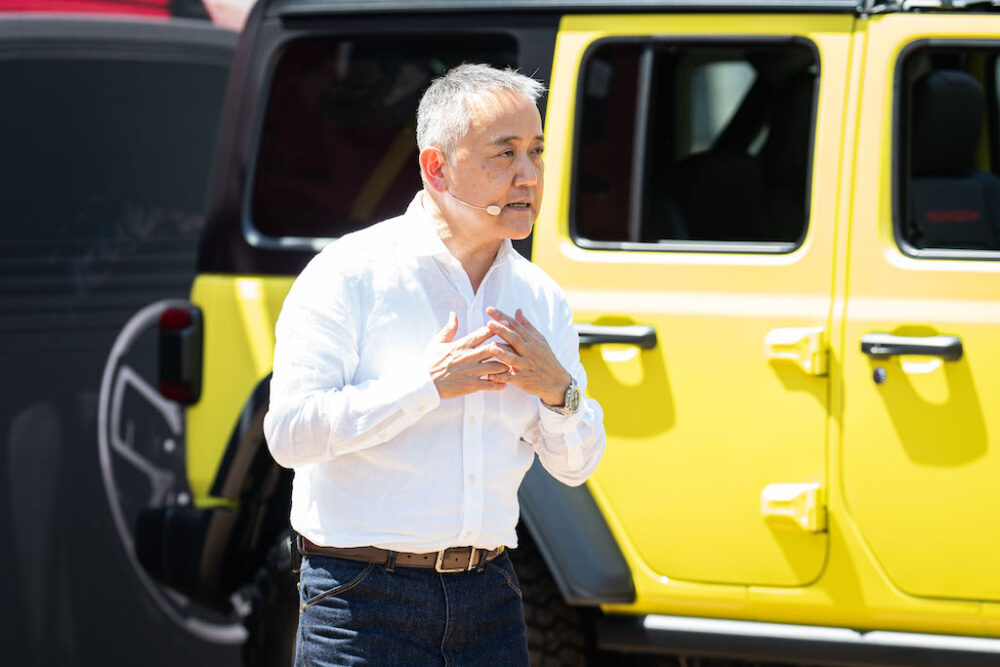 ジープの総販売元である 会場のMIYASHITA PARKに Steiiantisジャパン代表の打越氏の挨拶で、発表会はスタート! 新型ジープのコンセプトや販売戦略が発表され、新型ジープの全貌が明らかに。
