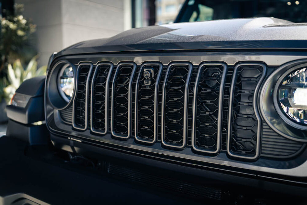 ジープが誇る縦に7つのスロットが刻まれたグリルに、丸いヘッドライト。誕生以来80年以上の長きに渡る伝統的なデザイン。新型ラングラーにもしっかりと受け継がれている。