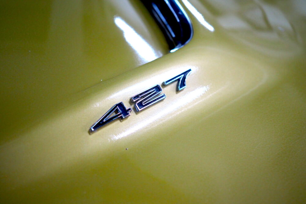 搭載される427キュービックインチ(約7000cc)の心臓部。このエンジンは1966年から搭載が始まり、現車の1969年式が最終年式になる。同じ排気量でも390馬力、400馬力、430馬力、435馬力の4種類の馬力違いが存在した。現車は390馬力仕様。エンジンフードに排気量を示す427のエンブレムが装着される。