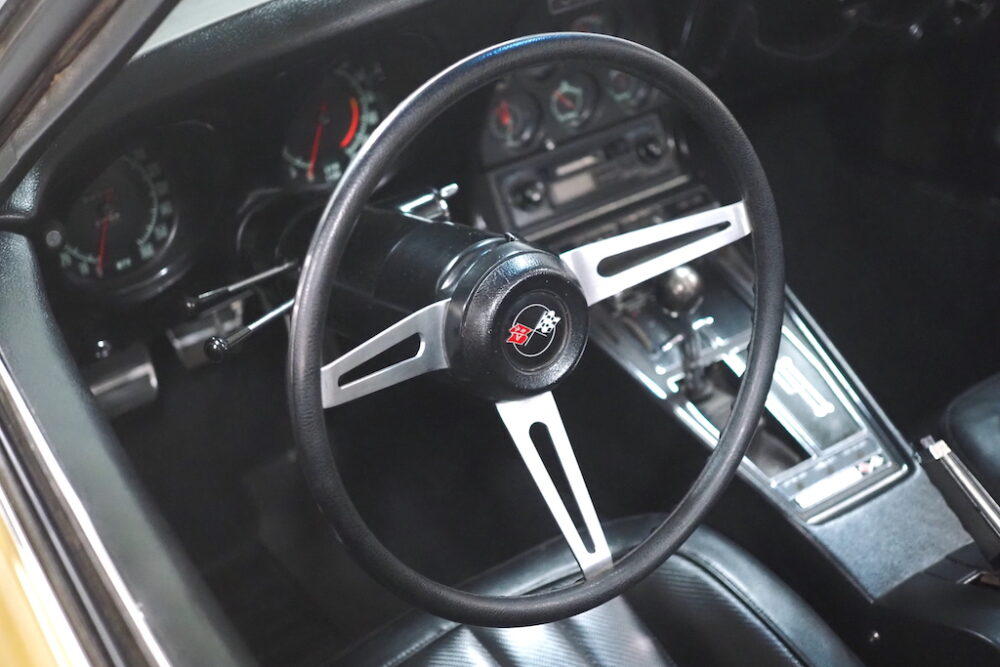 コクピットもオリジナルコンディションをキープする。内装はブラックに統一されたスパルタンなイメージ。ステアリング中央にはクロスフラッグスと呼ばれるシボレーのエンブレムが装着される。トランスミッションは4速マニュアル。