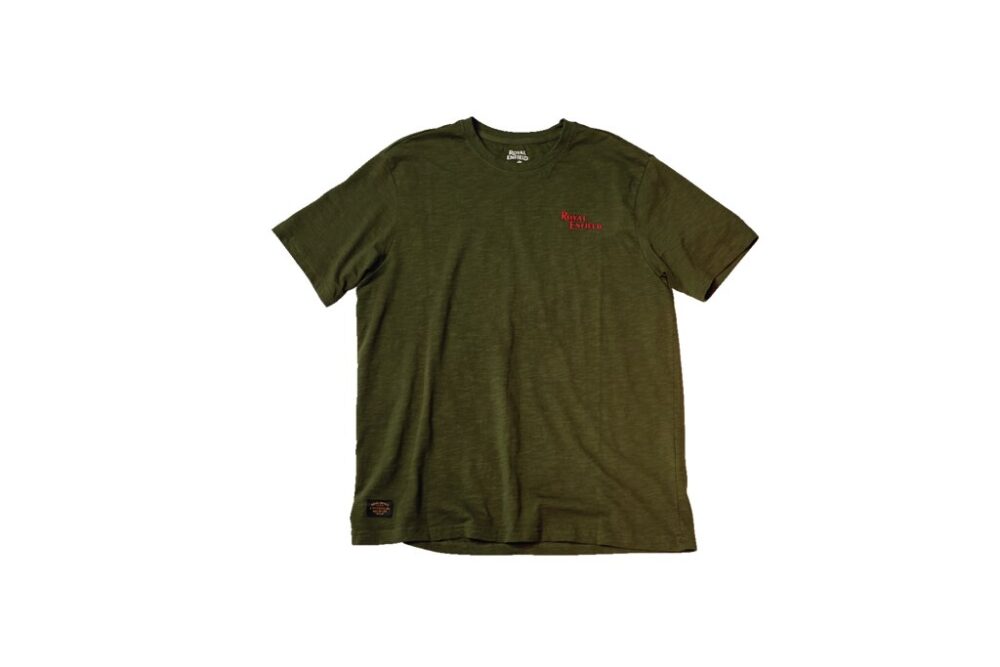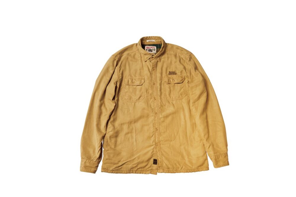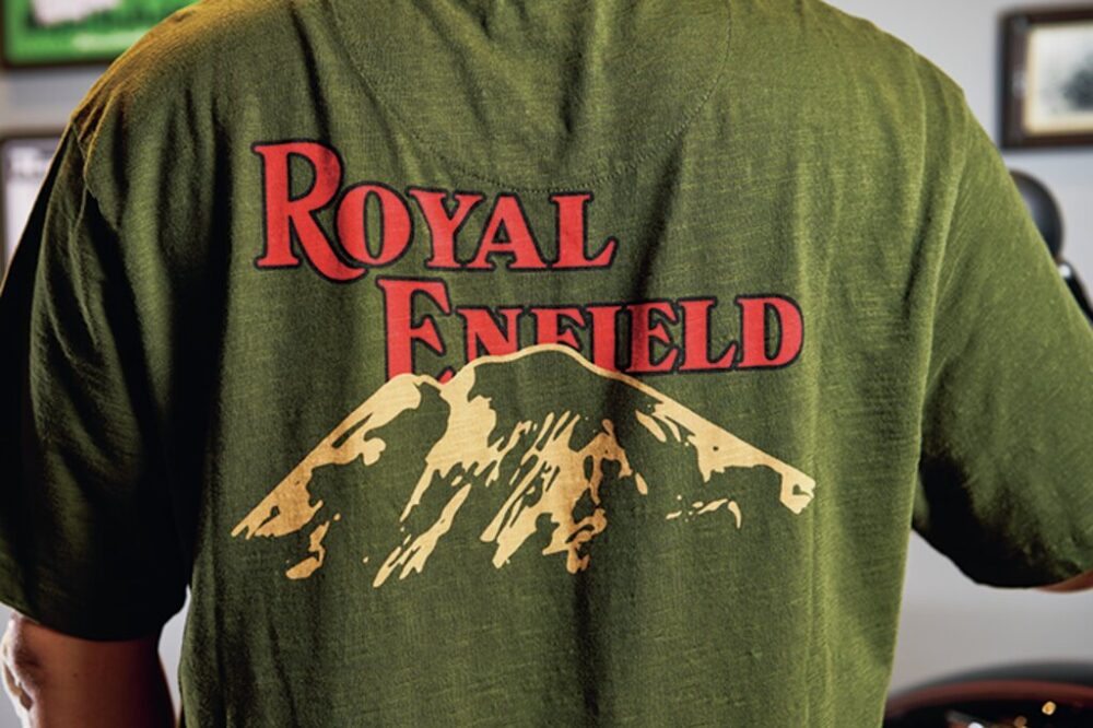 アパレルも充実しているのが近年のロイヤルエンフィールドの特徴。バイク乗りに特化したデザインだけでなく、カジュアルなアイテムも展開している。街中でも自然と馴染むデザインも豊富で、御覧のようなミリタリー調のコーディネイトも可能。軍にも採用実績のあるBULLETだけに違和感なくフィットする