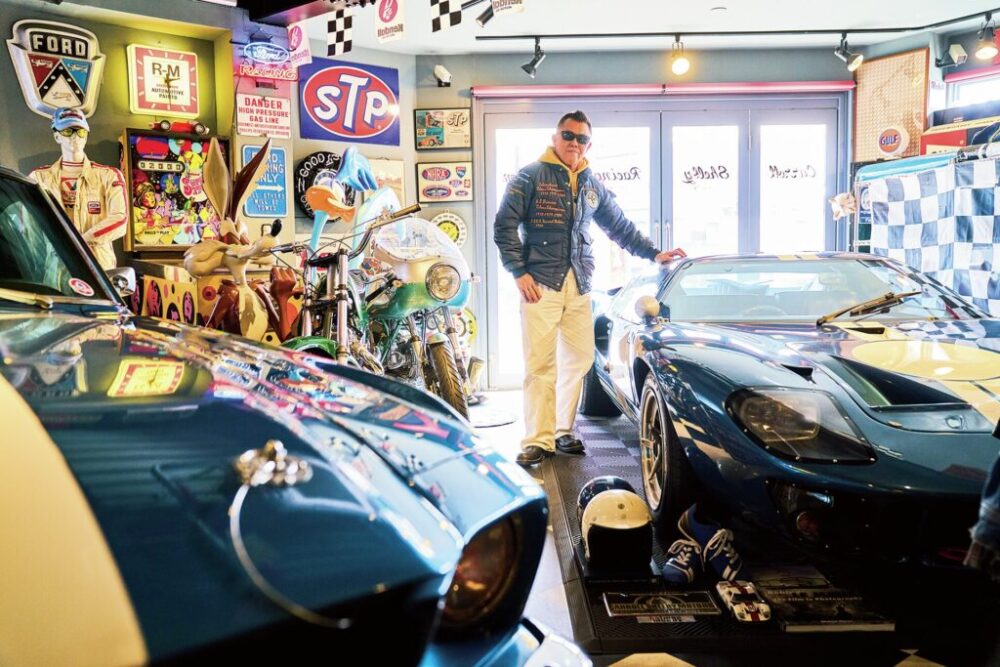 オーナーの奥山さん自身もシェルビーマスタングGT500やGT40をはじめアメリカ車数台とハーレーなどバイクも複数台所有するほか、ヴィンテージウエアのコレクターとしても知られるだけに、その知識の深さはハンパなし。