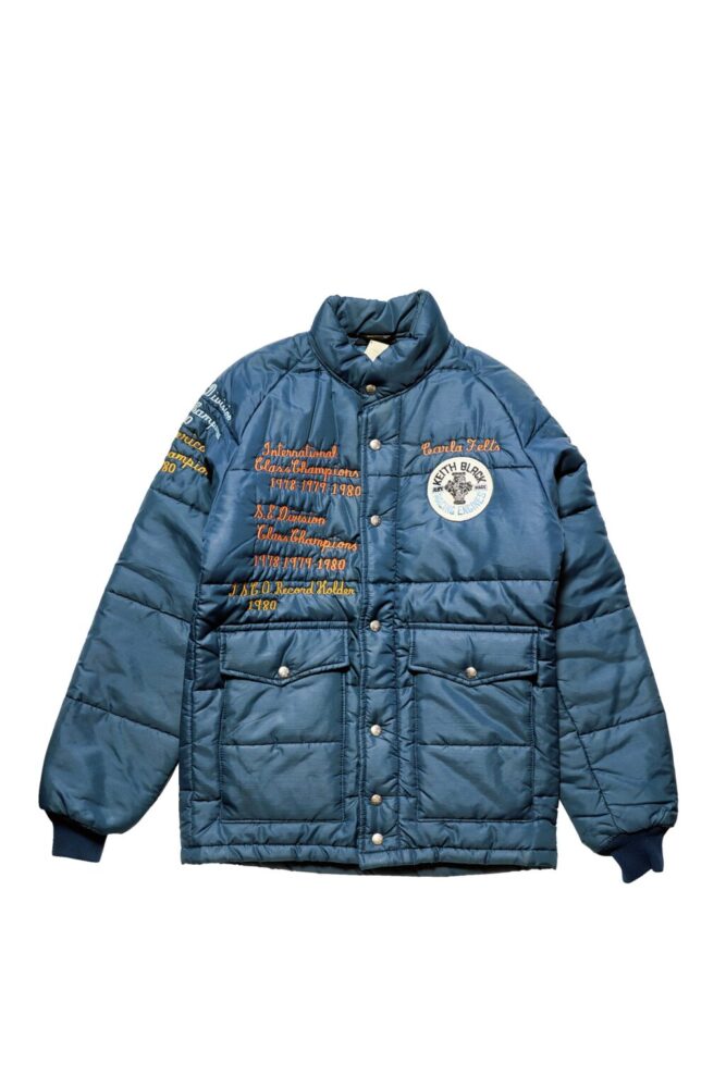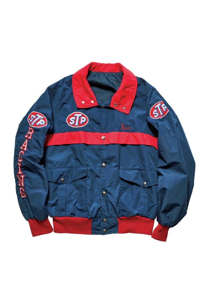 アメリカのレースシーンでは欠かせないオイルメーカー「STP」のロゴワッペンと袖に刺繍の入ったコーチジャケット。メーカーは不明。「STP」だと白ベースが多いがこのカラーリングはレア。レーシングクルーかお偉いさんが着ていたモノと推測される。1970年代製。8万4000円