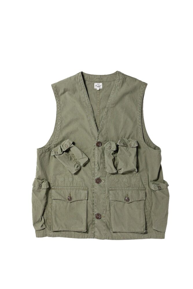 大小様々なポケットをフロントだけでなく脇にも立体的に配置したミリタリーベスト。機能性に優れ、長年培ってきた復刻技術を感じられる仕上がり。3万7400円