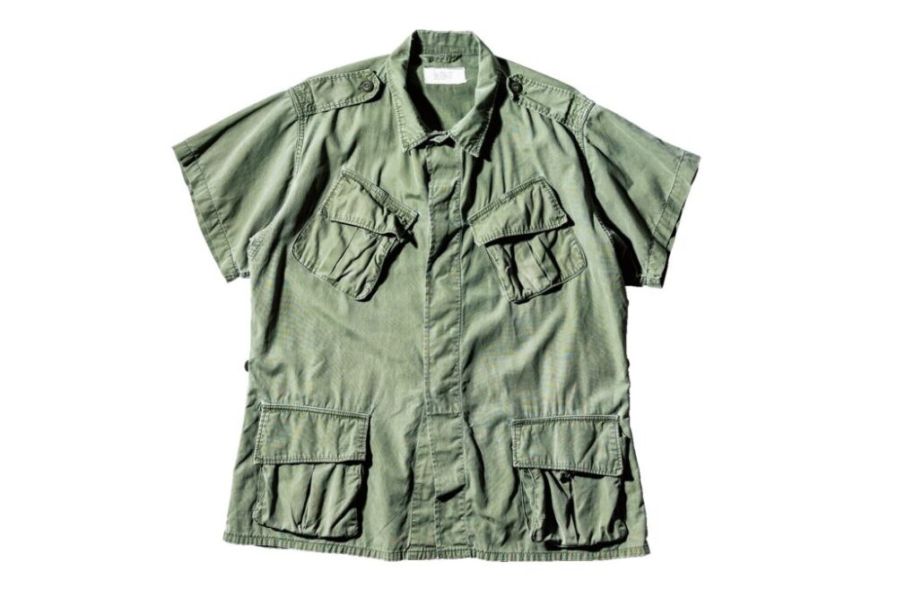 熱帯地用野戦服、通称「ジャングルファティーグ」の2ndタイプ。袖が大胆にカットオフされた1着。希少な2ndタイプを珍しい半袖タイプで着用できる唯一無二のアイテム。2万4500円