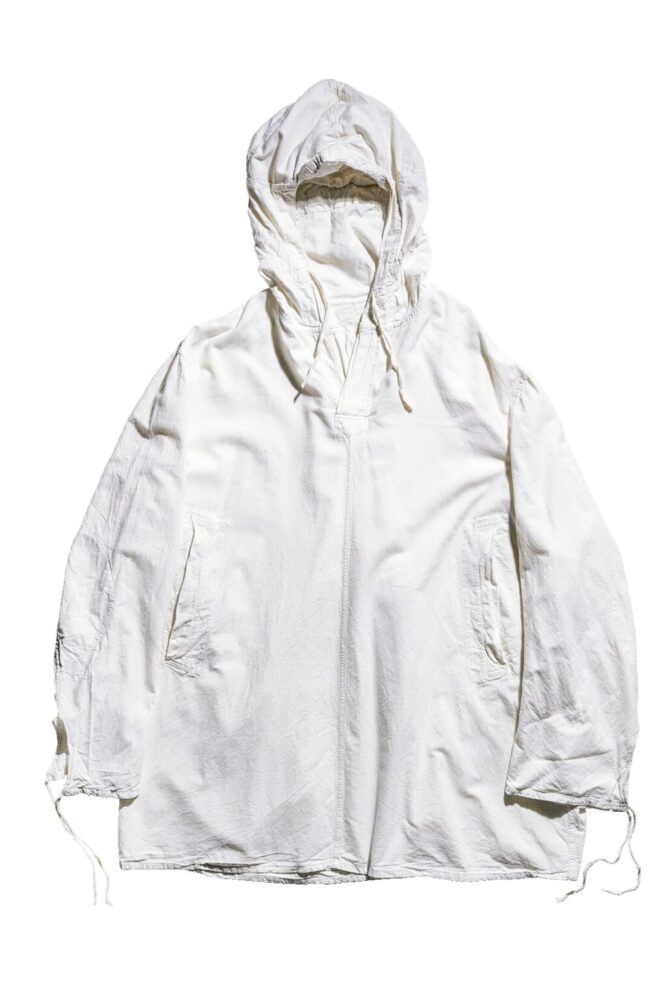 チェコ軍が降雪地帯の行事や戦闘の際に着用していたオールホワイトのプルオーバータイプパーカ。薄手のコットン生地なのでシャツのように軽やかで、ゆったりとしたサイズ感。1万780円