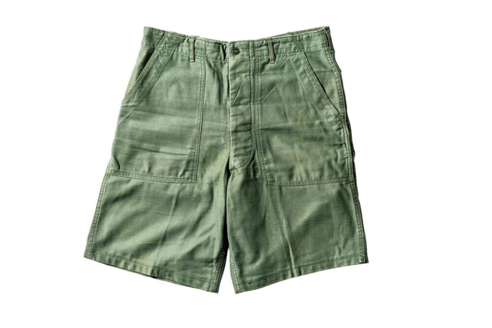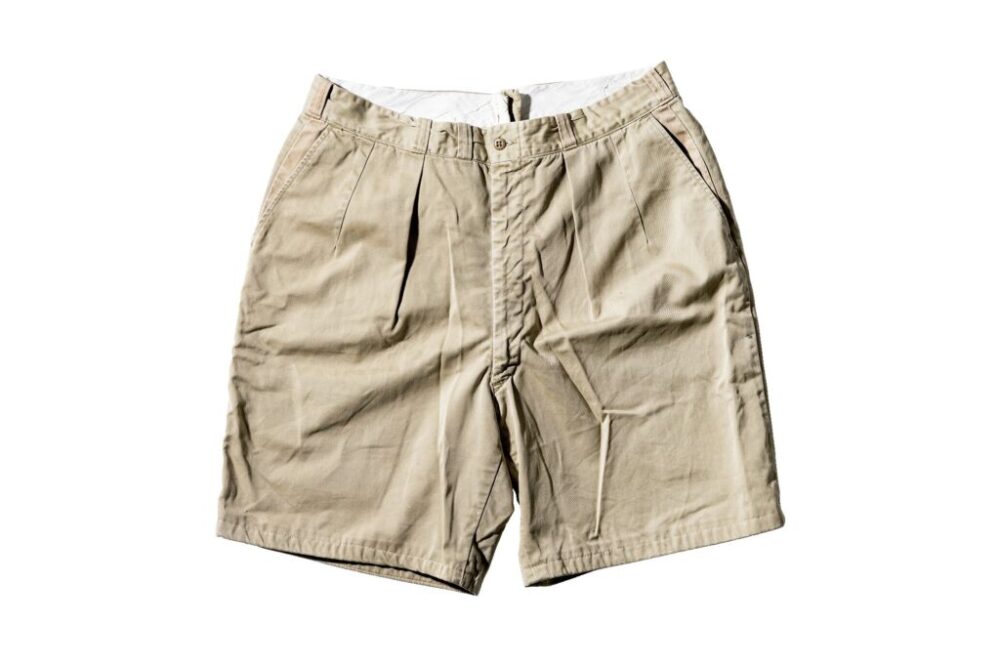 1950年代のU.S.ARMYチノトラウザーズをカスタムでショーツにしたもの。ポケット口やベルトループの生地がボディの生地とは異なるイレギュラー仕様。3万8000円