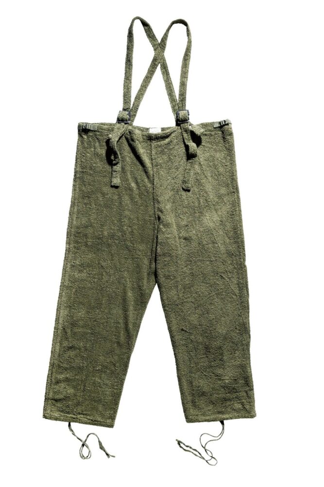 米軍の有害化学物質(TOXICOLOGICAL)防護服。本来は作務衣のようなタップスーツと着用する。コットン素材が多いが、タオルのようなパイル素材が特徴的で希少なアイテム。1万7380円
