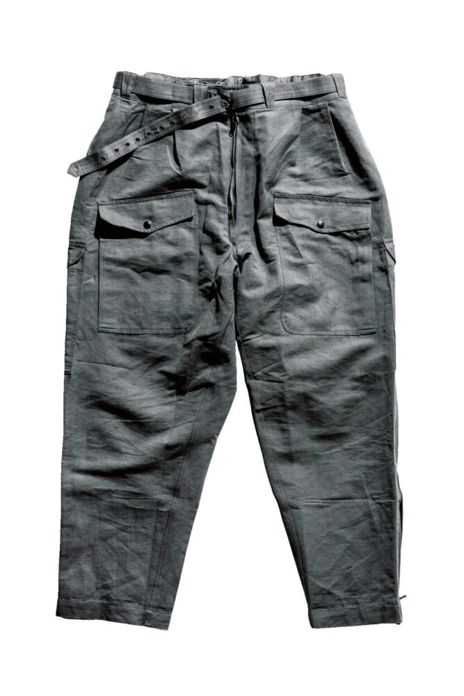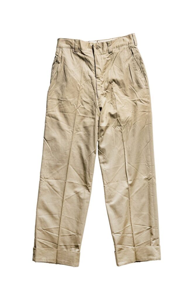 1960年代、ベトナム戦争時に米空軍に熱帯地用として支給されていたデッドストックのトラウザーズ。薄手で乾きやすいのが特徴。センターに入っているタックがドレッシーな装い。1万6000円