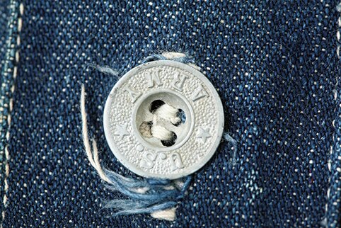 それによって、多くのデニムウエア(他の生地も同様)が、この時期だけの特別な仕様にすることを余儀なくされたのだ。例えばカバーオールの場合、通常4つポケットだったものを2つにし、ブランド刻印入りのボタンは軍でも使う月桂樹ドーナツボタンに変更。しかもフロントは4つボタン、カフスは1つボタンが義務付けされた。ポケットの補強布も排除され、ポケットのステッチもなくなった。これが今人気の「大戦モデル」だ。まさに戦争関連のデニムの象徴だ。