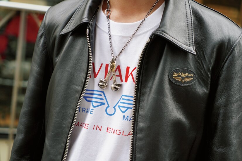 「英国車から大きな影響を受けたデザインなので、ルイスレザーズもハマってくれるんです。今日着ているのは、6月からオーダーできるブリティッシュシープを使ったコルセア。今の時期はシングルの軽さがちょうどいいですね」