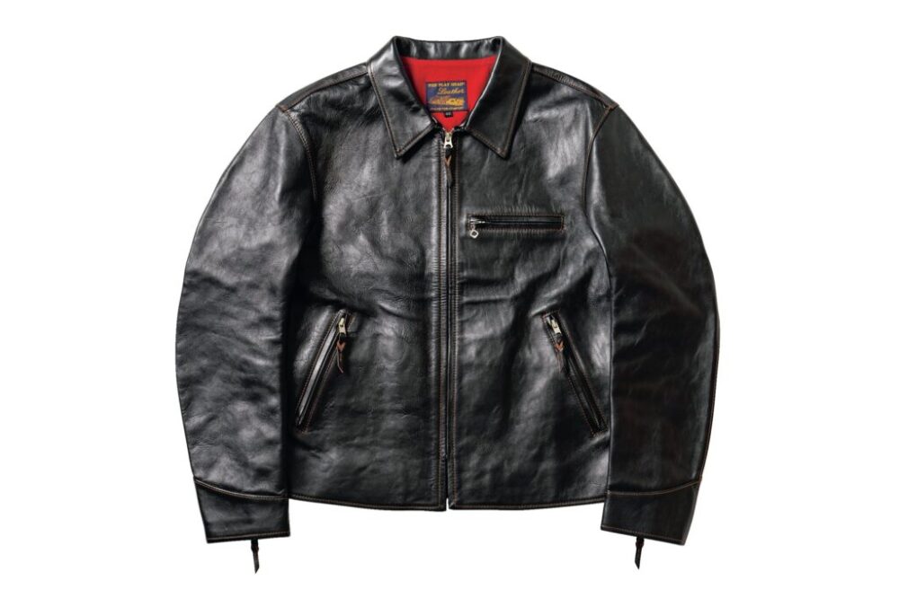バイク乗りから絶大な支持を得ている定番のホースハイドダブルライダースジャケット。40年代に米国で流行したDポケットを用いたクラシカルなデザインに、フラットヘッドの代名詞でもある茶芯のホースハイドを落とし込んだ名作。ユニバーサルジッパーやアクションプリーツ、スタッズを施したエポレットなど細部の作りにも注目したい。31万9000円