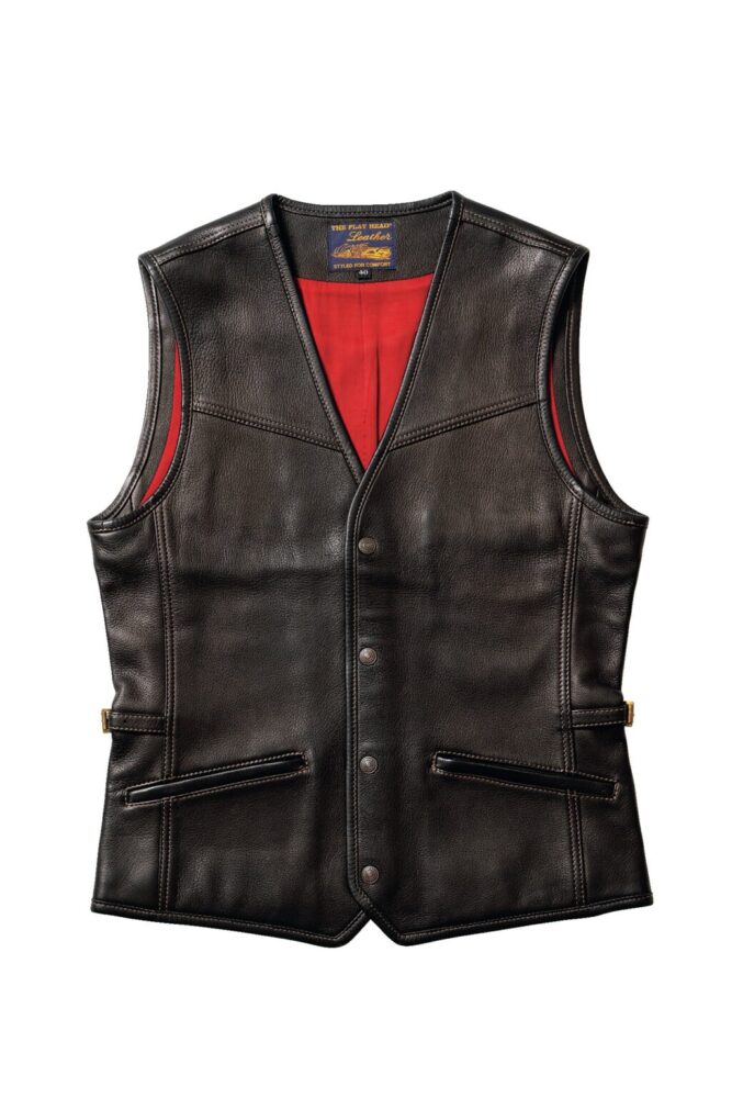 新定番として注目したいのが、日本を代表する老舗タンナーである藤岡勇吉本店のディアスキンを用いたベスト。“革のカシミア”と称されるほど柔らかなディアスキンは、ストレスのない着心地を提供してくれる。インナーにはレーヨンカルゼを使うことで、暑い時期はアウター、冬季はインナーとして着られるのでオールシーズン対応に。18万7000円
