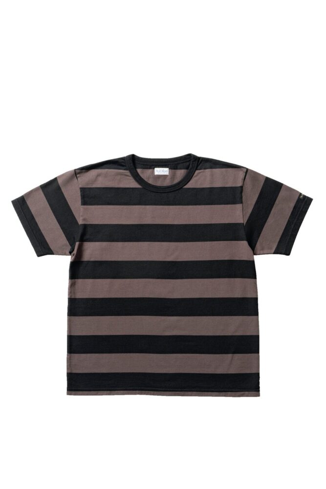 バイカーファッションに欠かせないのが、太いピッチのボーダーTシャツ。コットンに付着した細かな繊維を取り除いたコーマ糸を2本により合わせ、さらに度詰めで編み上げることでヴィンテージライクな肉厚感と生地のなめらかさを両立。極めて手間をかけて作った丁寧な作りが最大の魅力。首元はタフな3本針の1本外しの縫製を採用している。1万5400円