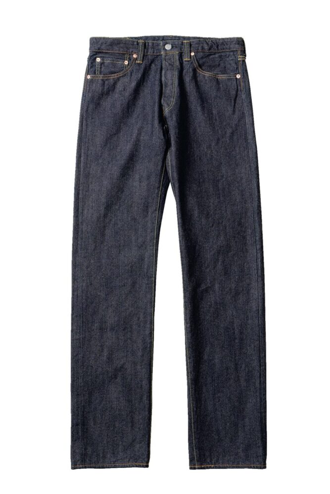 繊維長が長く、その希少性から“綿の宝石”とも呼ばれるジンバブエコットンを用いたオリジナルデニム。厚みのある14.5ozの耳付きデニムを、あえて左綾で織り上げることでジンバブエ綿ならではの肌触りの良さを体感できる仕上がりに。モダンなテーパードシルエットながらも、隠しリベットやオリジナルの鉄ボタンなど、ヴィンテージの意匠も再現。3万7400円