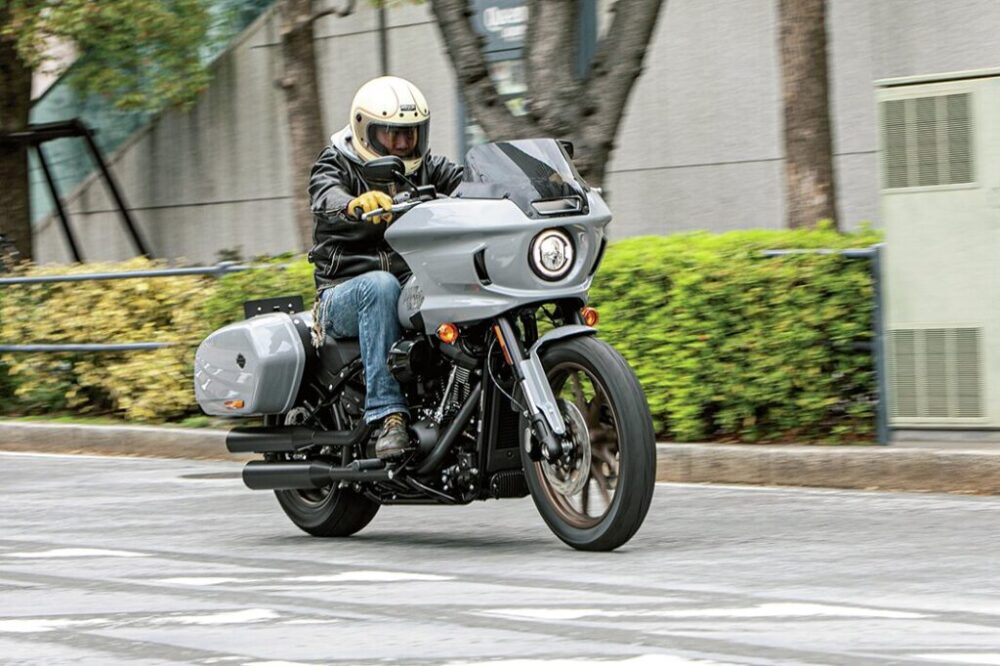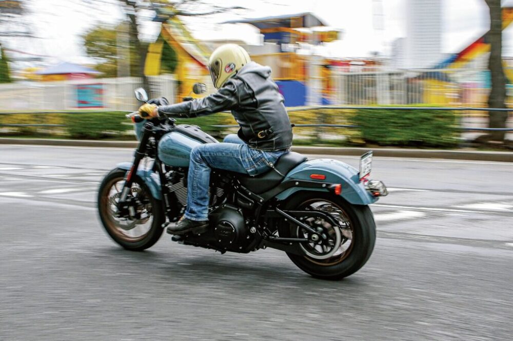 ローライダーSと基本構成は同じだが、フェアリング装着のためにフォークのセッティングが変更されているほか、リアの車高も上がっているためツアラー的な大柄な印象があった。が、軽快な操縦性は健在!!