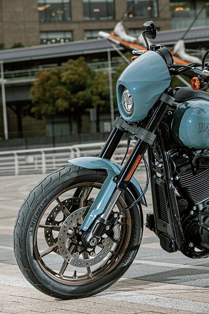 ハーレーの中でも歴史があり、アイコン的存在となっているローライダー。そんなモデルをベースに、扱いやすいよう押さえの利く形状のハンドルバーを採用し、ハイスピードに耐えられるようにミニフェアリングを装備。さらに高性能な足まわりにトルクフルなエンジンを搭載し、走りの性能を研ぎ澄ますことで、まさにアメリカ西海岸で人気のスピードクルーザーに仕上げた。ソリッドなカラーにシンプルなロゴという、飾り気のなさも“漢らしさ”を感じさせる一台だ。