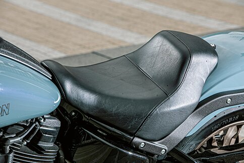 シンプルな形状ながら、ライダーの腰をしっかりと支えるシートを採用。幅を抑えたスリムな形状で足つき性も良好。