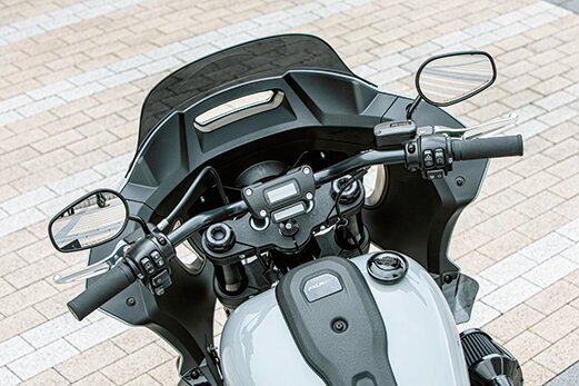 カスタムシーンで人気の「RTカウル」を復刻するのではなく、最新デザインで整流効果も高いフェアリングを装備。