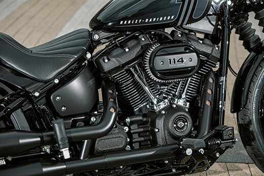 2023年モデルから採用された排気量1923㏄の117エンジン。エアクリーナーもエルボー型の、カスタム感の強いタイプ。