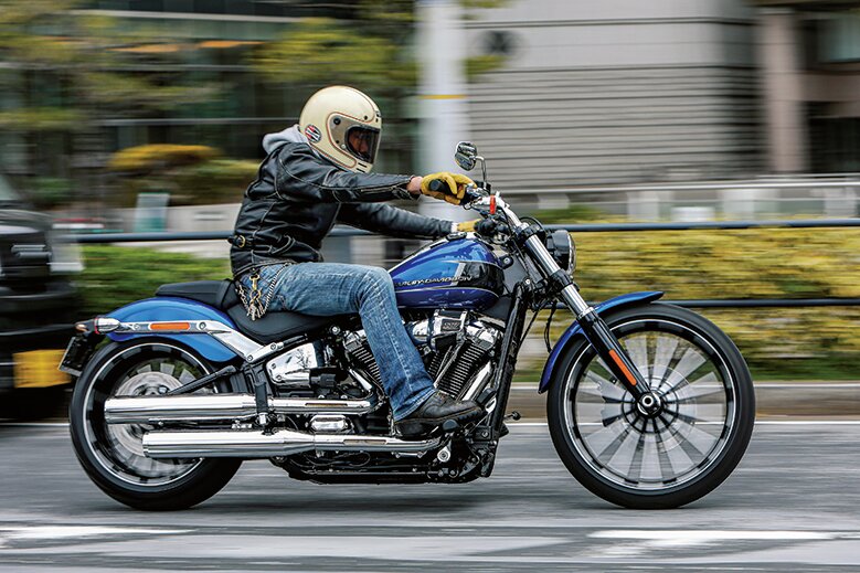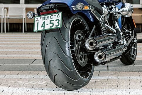 曲がることを考えていない極太タイヤだが、それでも最大限に乗りやすく調整された操縦性。ハーレーに乗っているオレ、カッコいいでしょ~という気分に浸るには最高のモデルだ。