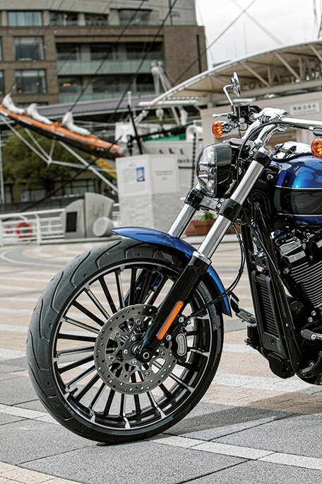 リアタイヤに240㎜という極太サイズ、そしてフロントホイールに21インチの大径サイズを採用。フロントフォークを大胆に寝かせたロー&ロングなフォルムに加え、ドラッグバーハンドルや足を前方に投げ出すフォワードステップなど、カスタムマシンさながらの押しの強いルックスで日本でも高い人気を誇る。最強といえるルックスにトルクフルな117エンジンという組み合わせは、まさしくメーカーが作ったチョッパーだ。