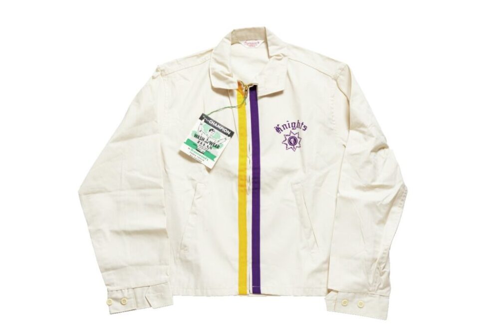 チャンピオンのコットン製スウィングトップ。ロゴとコットンの質感から1960年代と推定。色合いとナイツという文字とロゴからロサンゼルス・バプティスト・ハイスクールのものだと思われる。ロサンゼルスらしい色合いに加えて、タグ付きの未使用品という激レアモデル。9万8000円