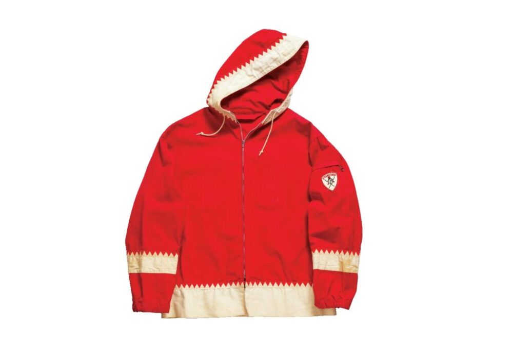 メーカーは不詳、1960年代製と思われるパーカ。ヴィンテージ好きには知られるホワイトスタッグのパーカに似ている。袖のワッペンからスタンフォード大学のチームジャケットと推察される。袖やフードの柄はハンドメイドのようでチームか個人でカスタムしたものと思われる。6万8000円