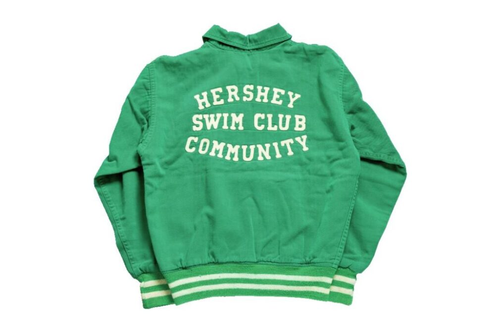 ペンシルバニア州ハーシーにある名門スイムクラブの前身と思われる「HEARSEY SWIM CLUB」のチームジャケット。コットン製。上下セット。鮮やかなグリーンカラーと、現在にはない素材感が印象的。コンディションも極上のレアアイテム。6万8000円