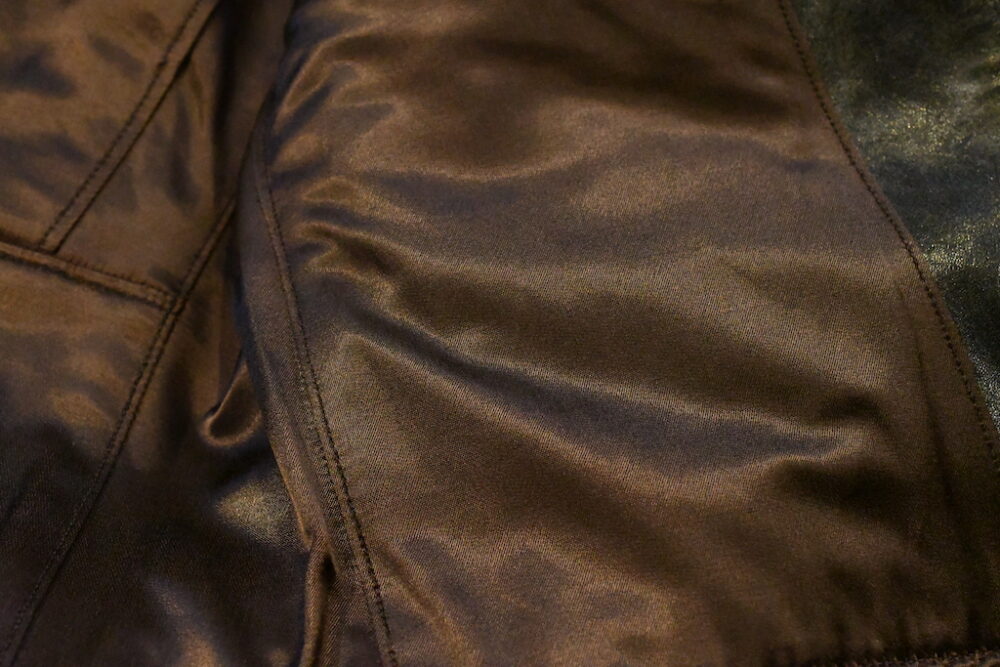 裏地には通常モデルはウールメルトンが使用されているが、このバーンストーマー別注モデルは暖かい時期にも着用しやすいよう薄手で袖通りの良いコットンレーヨンを採用する。