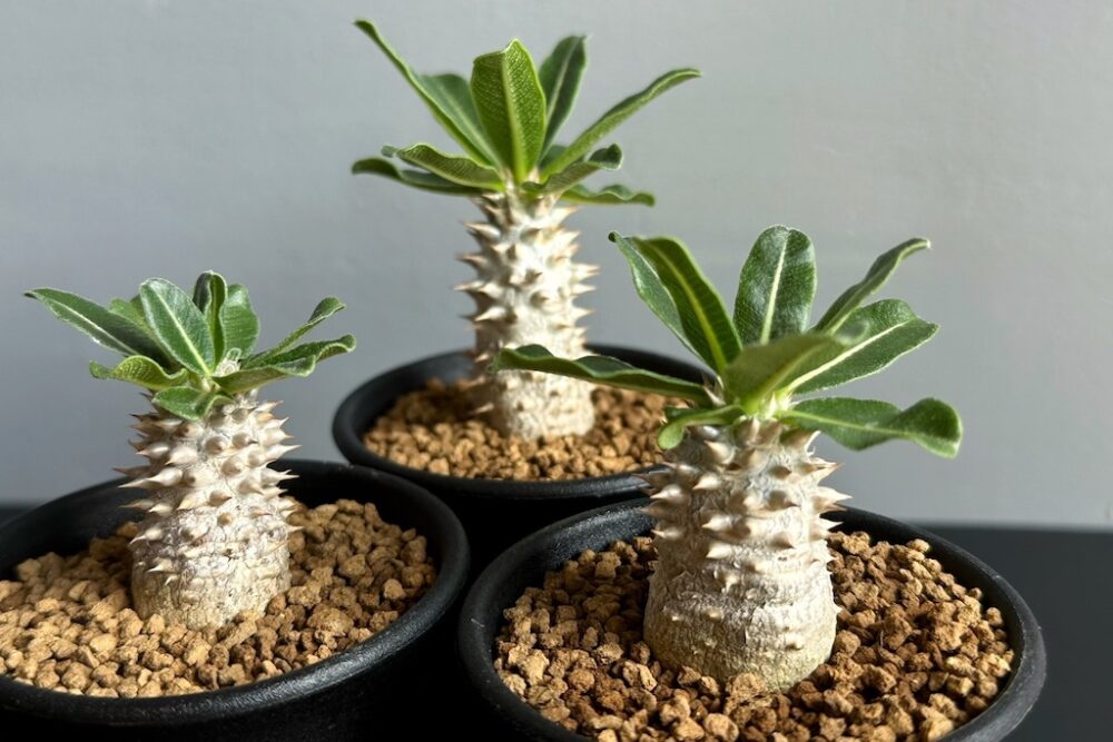 マダガスカル島や南アフリカなどが原産地であるパキポディウム属。パキポディム属の中には、グラキリスをはじめ近年の塊根植物の人気を牽引してきた品種が数多く存在します。