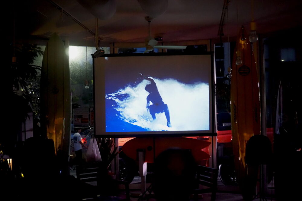 鎌倉にあるカフェ「ANOTHER DAY KAMAKURA」を会場に開催された今回のイベント。『メニイ・クラシック・モーメンツ』のダイジェスト版の上映をメインに、多くのサーフィン関係者たちが集まった。