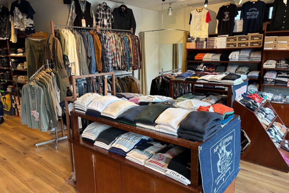 取り扱うブランドはシュガーケーン、フルカウント、ウエアハウス、フェローズ、ジェラードなどをメインに、現在ではデニムのセレクトに力を入れている。
