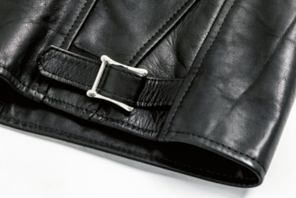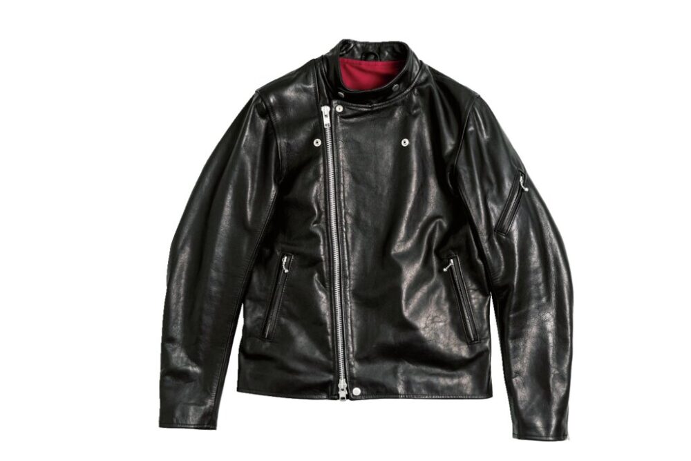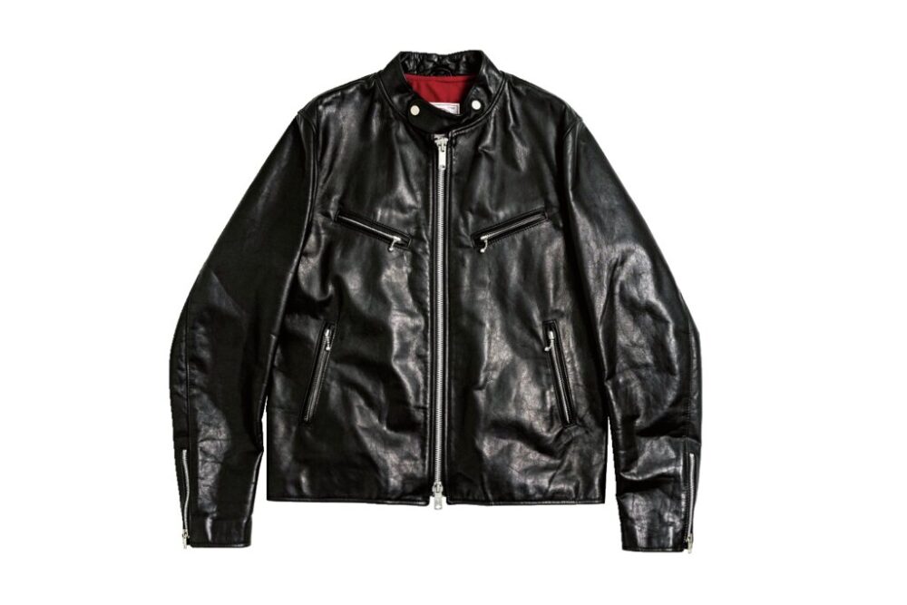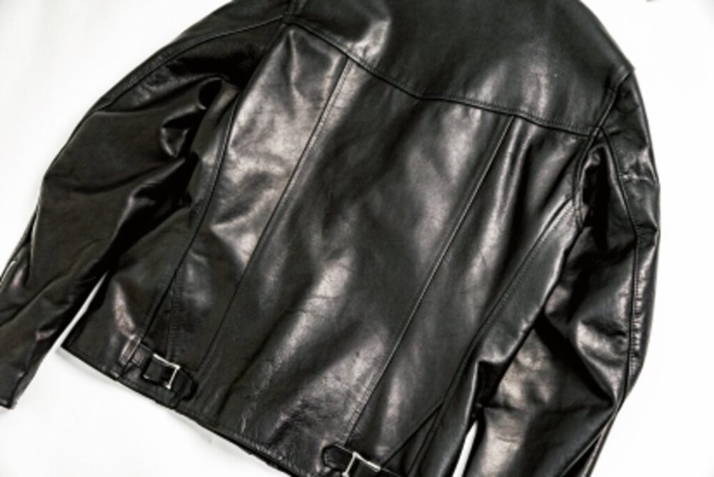 アーカイブのディテールを踏襲しながら、モダンな雰囲気に。ウエストバックルを背面に搭載することでスッキリとした印象のダブルライダースジャケット。19万8000円から。