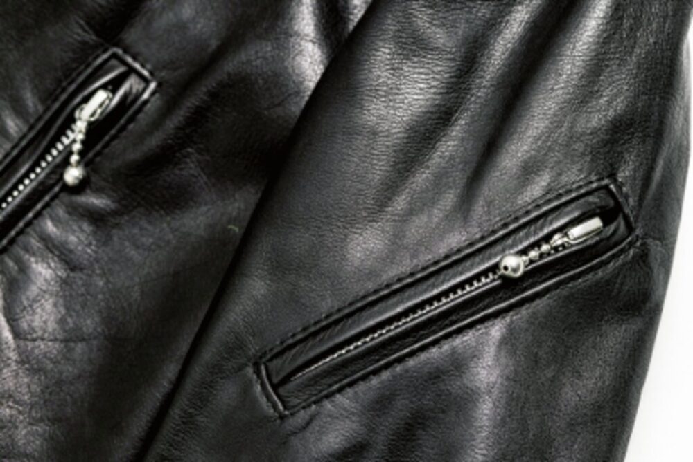 両胸に両玉縁仕様のポケットを搭載。着丈と袖丈が長い、英国のモーターサイクルウエアを感じるベーシックなデザインで初心者でも取り入れやすい。19万8000円から。