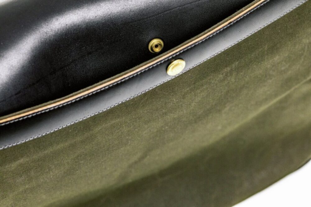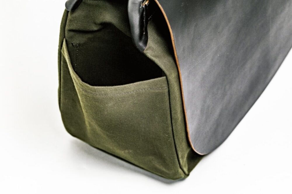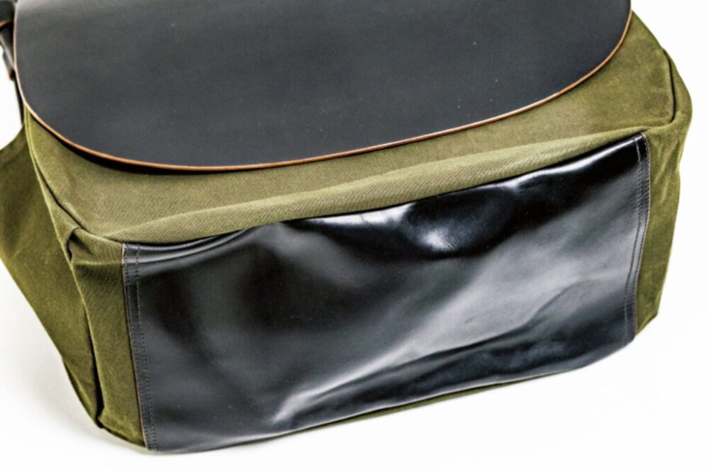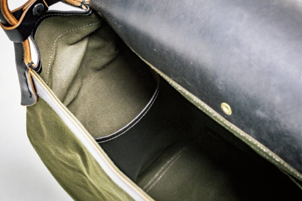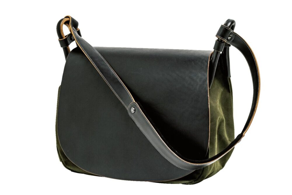 デザインと製作を本池氏自ら担当したモーターのショルダーバッグをアトラクションズ別注仕様でリリースしたのがこのモデル。素材はフルベジタブルタンニングのホースバッドと、ドラゴン防水と言われるパラフィン加工を施した屈強なヘビーオンスキャンバスを使用。底面のレザー補強やショルダーパット、複数のポケットなど実用性に溢れたハンドメイドバッグだ。9万6800円