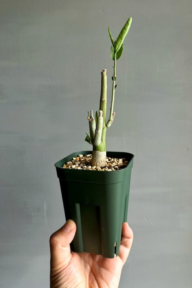 こちらは、アデニア・ペチュエリーを挿し木で育成した個体。非常に稀少なペチュエリーですが、挿し木でも育てやすい品種です。稀に大きな現地球も目にしますが、発根済みの現地球はかなり高額。
