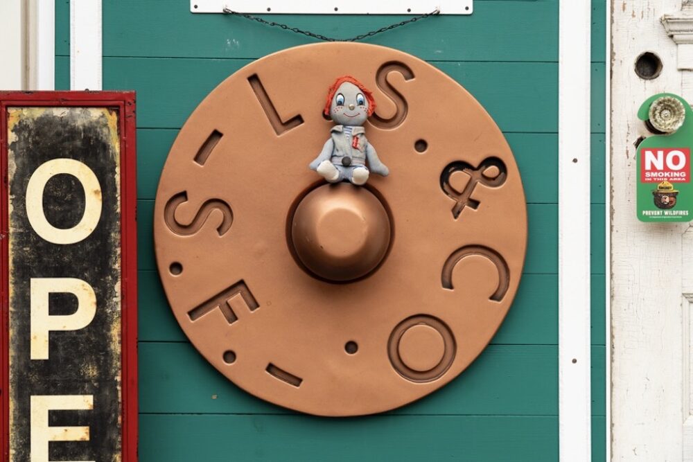 米国のリーバイス社製品を扱う小売店で使用された販促物。ロゴタイプはよく見かけるが、このリベットタイプはなかなかお目にかかれない。ちなみにリベット中央に居るリーバイス社のラグドールが全長約25センチなので、このリベットの巨大なサイズ感がお分かり頂けるだろうか。ASK。