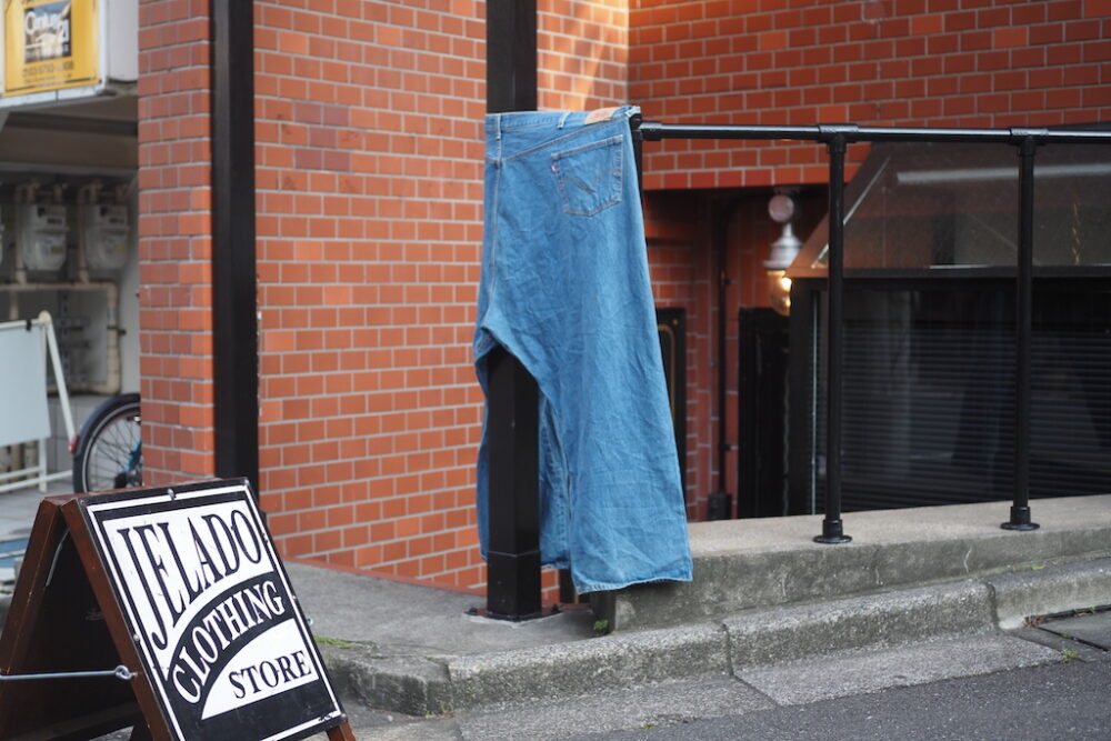 会場は東京は恵比寿に新しく生まれたジェラードのサービスオフィスで開催。入口には巨大なウエストのヴィンテージ501が目印になっていた。