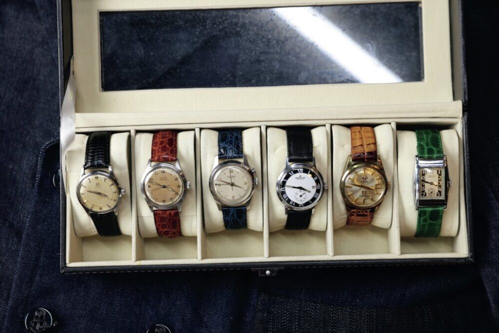 数あるコレクションの中から、山根氏らしくGジャンに合わせる時計としてセレクトした小ぶりのヴィンテージウォッチたち。ブランドや年代に関わらず、着用した際にファッションとして邪魔せずともほどよい存在感を放ってくれる時計が、彼の好みのようだ。
